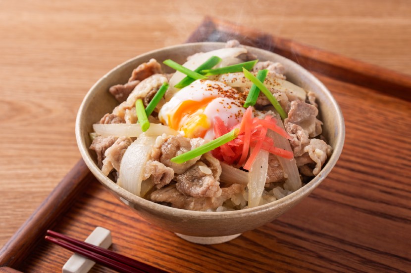 ご飯と一緒に盛り付け、温泉卵を乗せ、