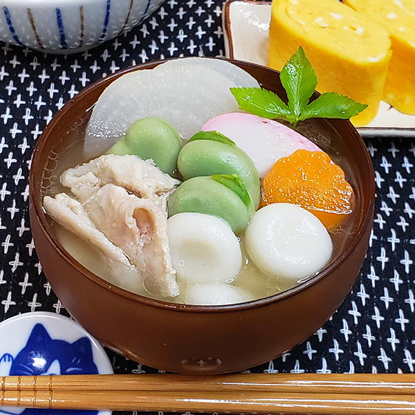 白玉団子が入ったみそ汁は見た目もかわいらしく、