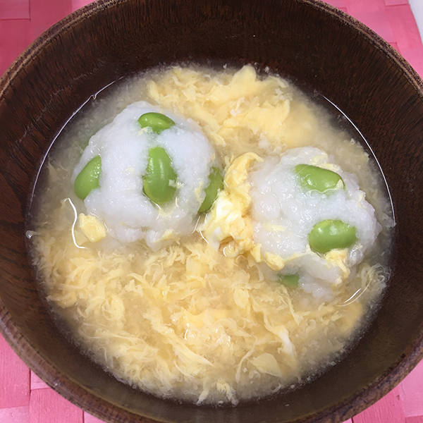 『あこwithラッキー』さんの、はんぺんと枝豆のお団子のみそ汁