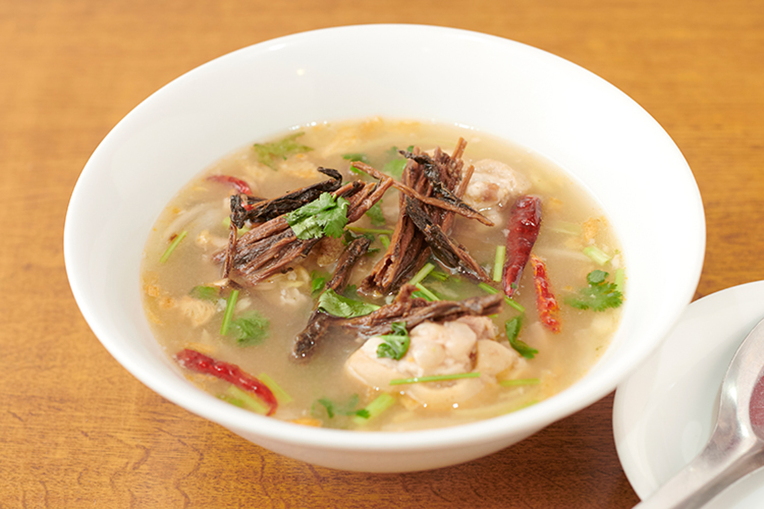 「お茶葉サラダ」「乾燥高菜のスープ 豚足入り」