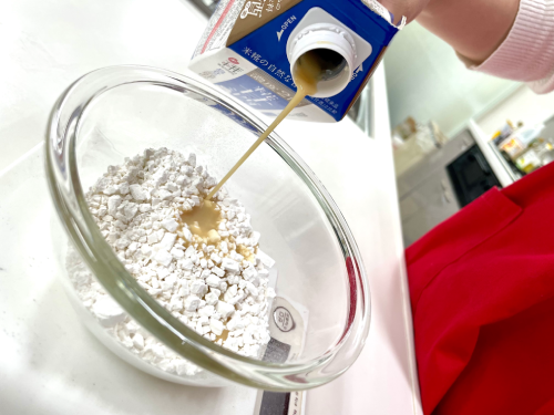 耐熱容器に白玉粉を入れ、「プラス糀 糀甘酒の素」を少しずつ加えながら混ぜます。