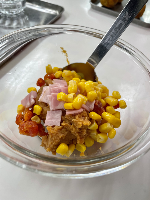 ボウルに「プラス糀 無添加 糀美人」、コンソメ顆粒、