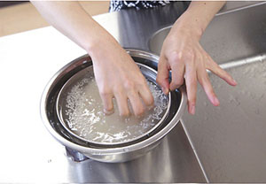 3.3~5回、水を換えながら、やさしく洗ってください。