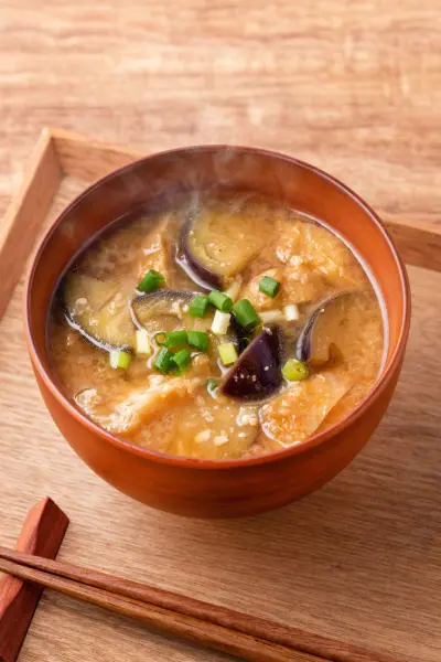 なすはゆっくり加熱すると色素が溶け出し、みそ汁が黒っぽくなることがあります。 熱湯を加え短時間で煮込むことで、色鮮やかに仕上がります。
