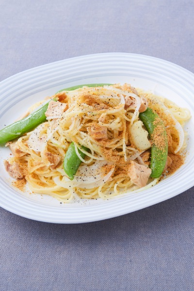 和風パスタにつぶみそを加えると味にぐっと奥ゆきがでます。
