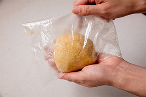 袋の中にひとまとめにして丸め、冷蔵庫で20分ほど寝かせる。