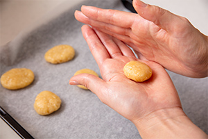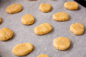クッキングシートを敷いた天板に並べて、オーブンで15分~20分程度、うっすらときつね色になるまで焼く。