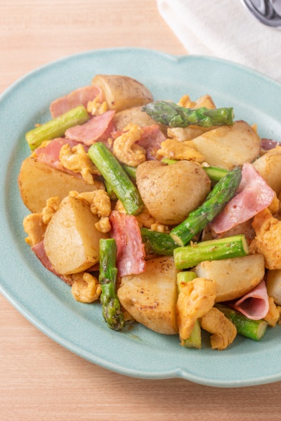 春の野菜でバタ一と隠し味に味噌、新じゃが、アスパラ春の味わいですね。