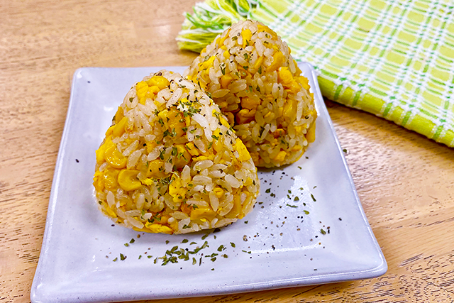 ①にバターと水気をきったホールコーンを加え、さっと炒め合わせる。