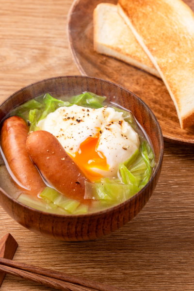 いつも落とし卵のお味噌汁はいただいておりますが、シャウエッセンと黒胡椒がプラスされると、一段と美味しさアップで、別物になります!