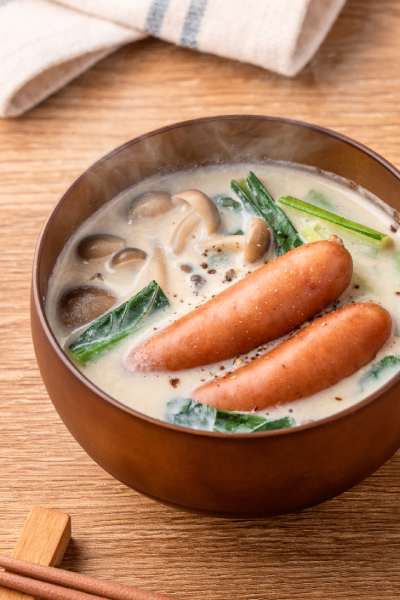◇きのことシャウエッセンの豆乳みそ汁作ってみました♪