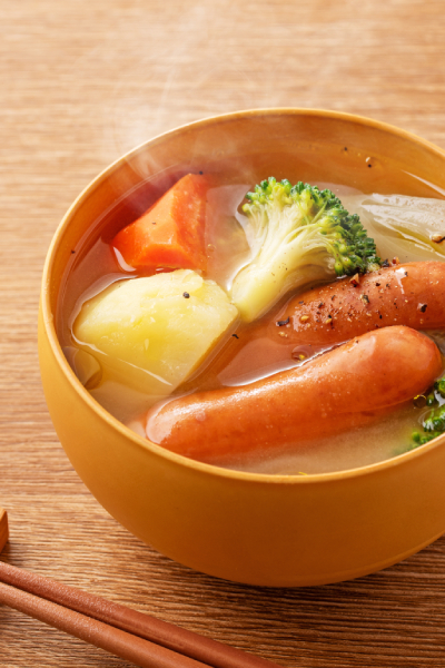 ウインナーのジューシーさと味噌の甘みが合うなと思いしまた。味噌汁がメイン料理になって健康にも良さそう!